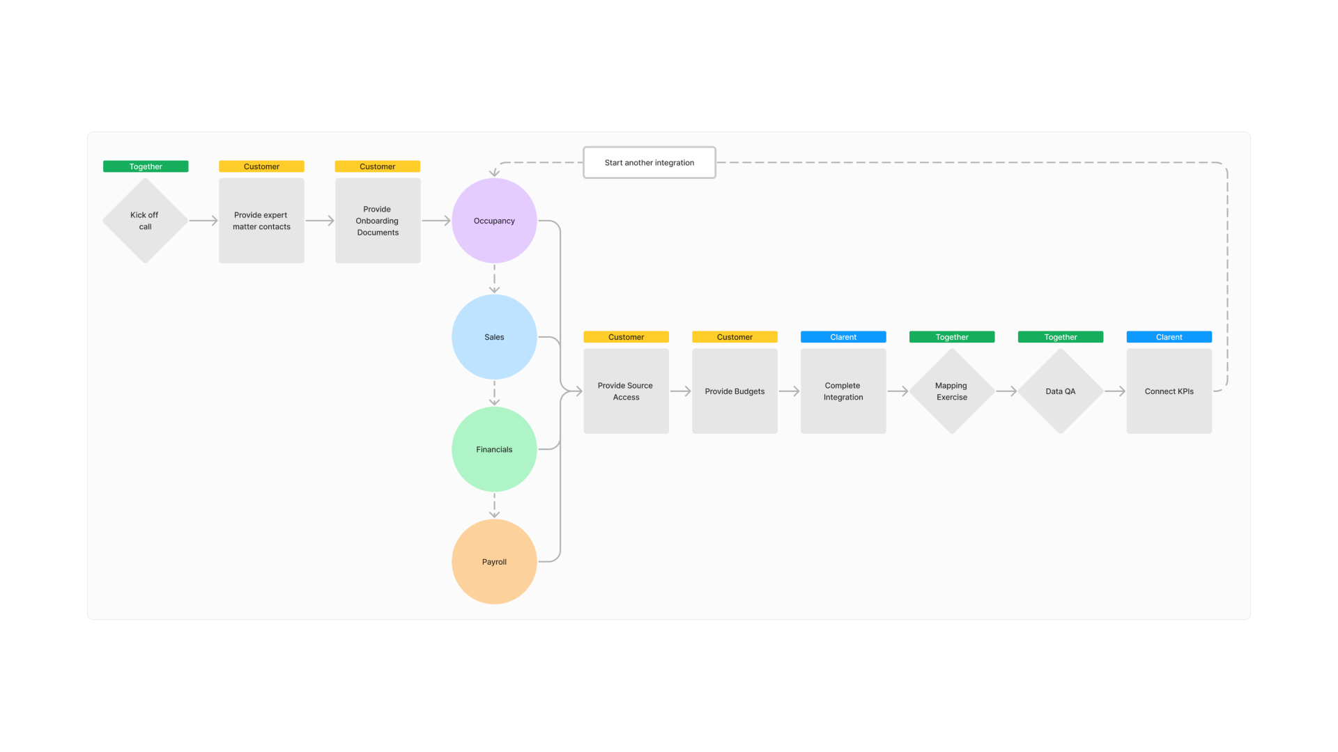 Once the basic onboarding tasks are finished, each integration requires the completion of six additional tasks before a user can access the associated KPIs. This ensures that the customer is on the right track.