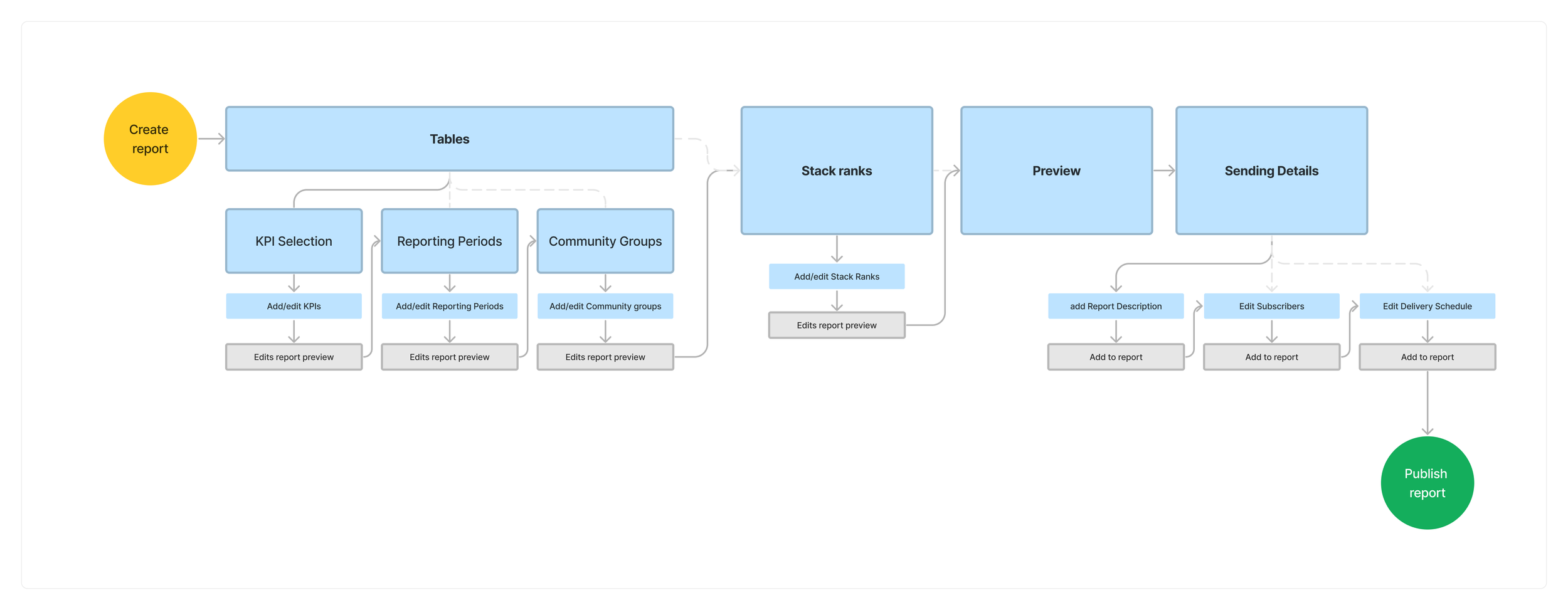 How might we design a robust report builder tool that empowers users to customize and expand upon Smart Reports, allowing seamless editing of report-sending schedules and recipients? The challenge is to transition from bespoke, custom reports to a scalable, user-friendly product capable of accommodating diverse customization needs.